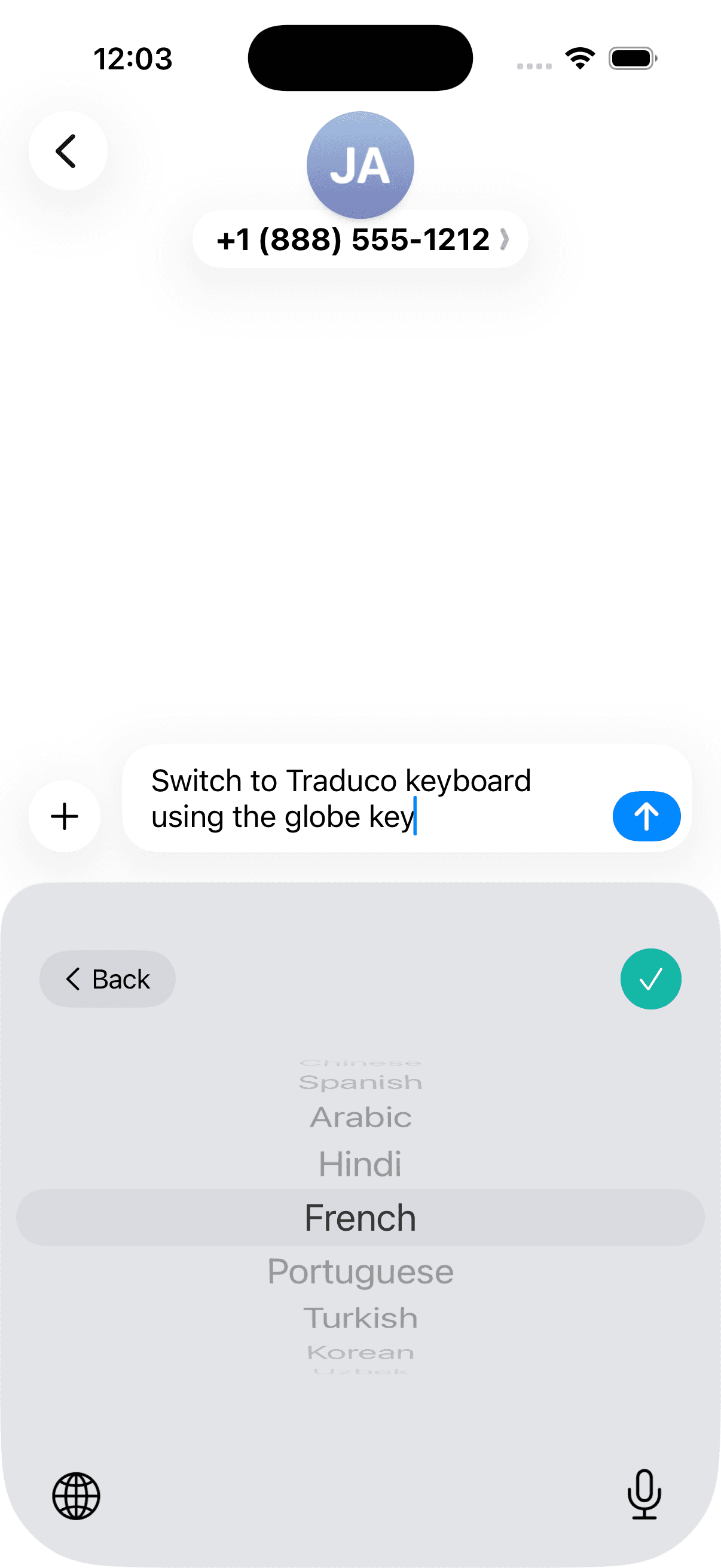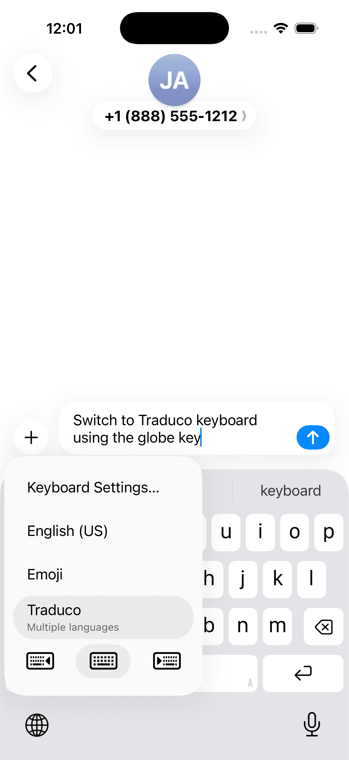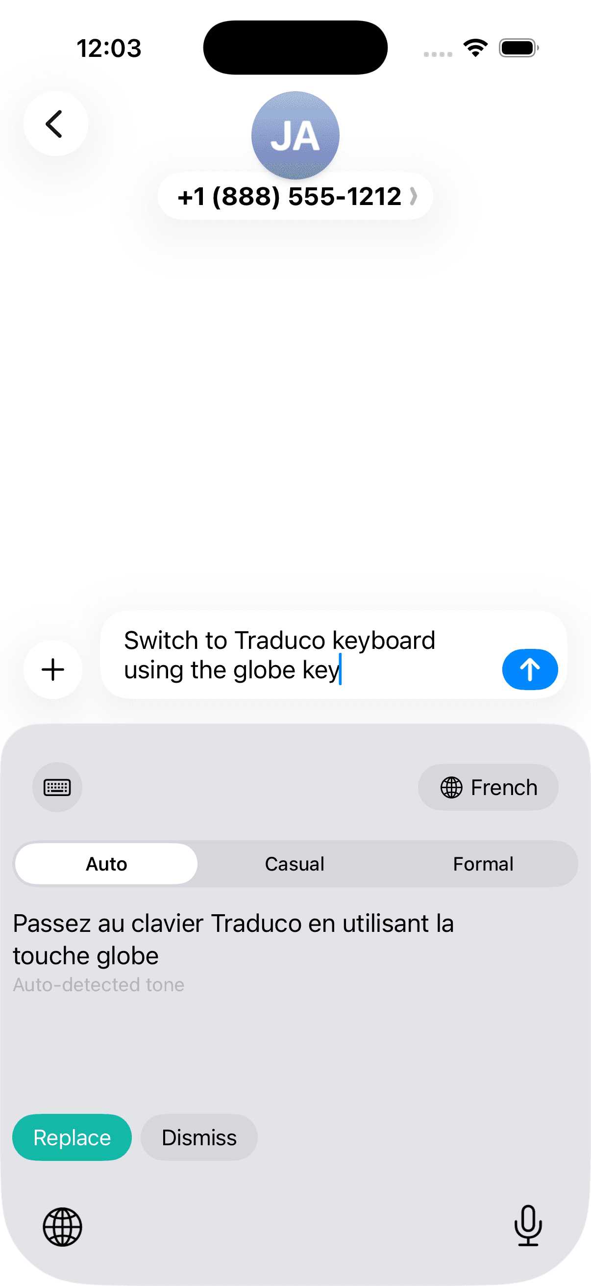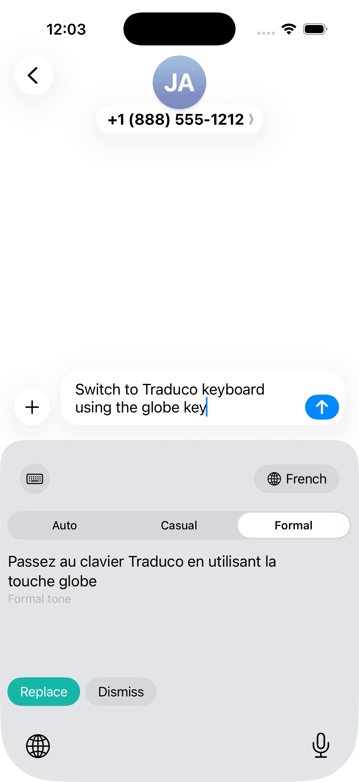 Traduco lives inside your keyboard. No app to open, no text to copy. Translation happens right where you're typing.